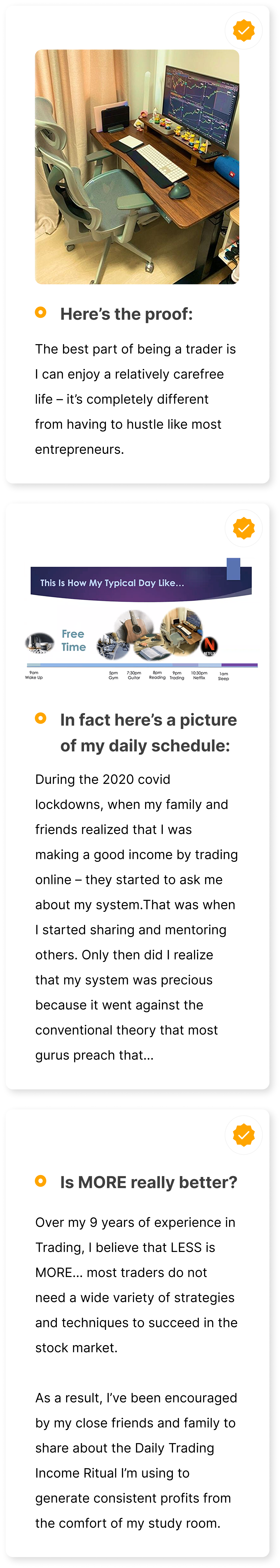 And I personally set out on a journey to master Trading, investing over 2 years of my life and SGD$45,000 into courses, masterminds, and programs. After learning from most gurus, I had