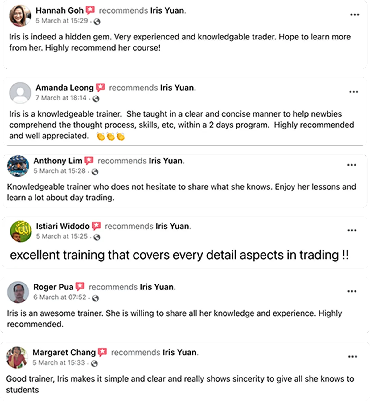 We make no representations, warranties or guarantees whether expressed or implied, made to the content in the program is accurate, complete or up-to-date. Past performance is not indicative nor a guarantee of future returns. We are an education company and hence is not regulated or licensed by MAS as we do not provide investment services.